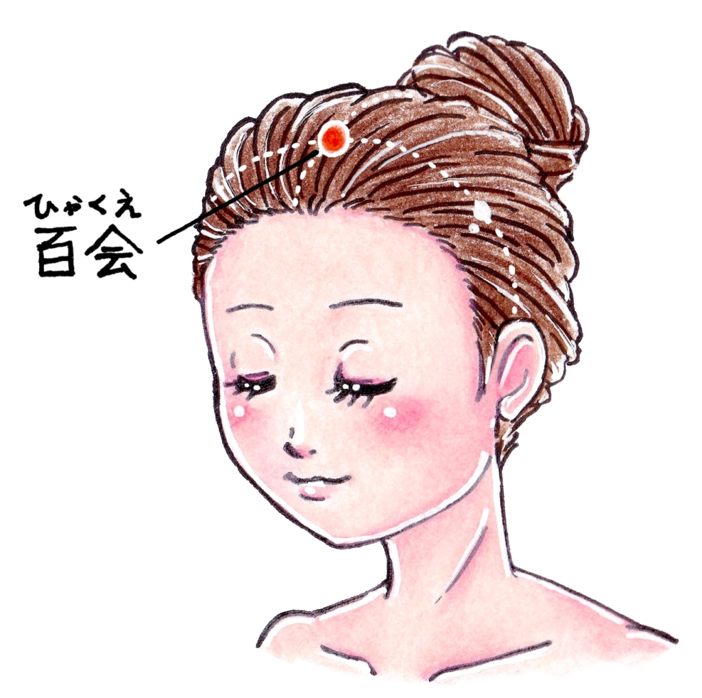 頭のてっぺん(両耳の上を結んだ線と正中線の交点)