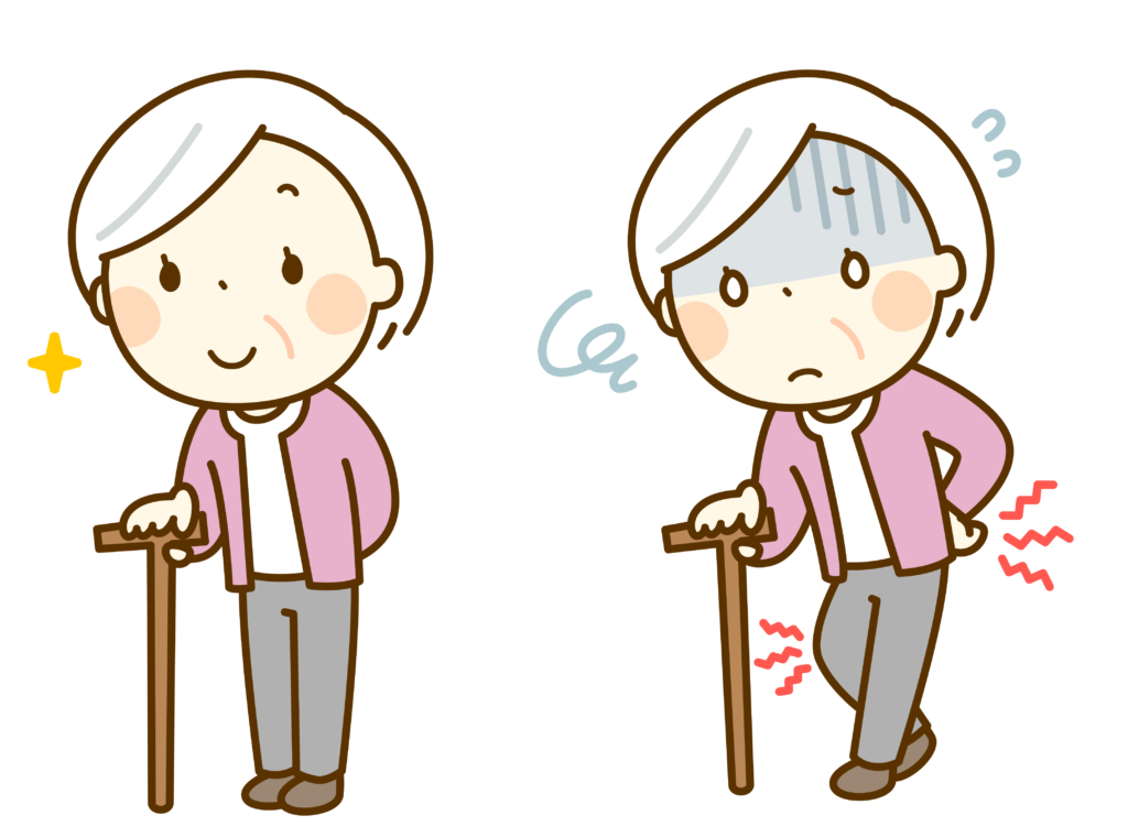 筋力が低下すると、正しい姿勢を保つことが難しくなります。