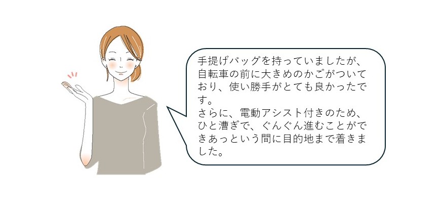 「電動アシスト付きで、坂道や長距離も快適にご利用いただけます!」